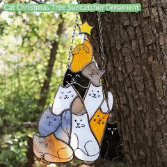 - CAT CHRISTMAS TREE SUNCATCHER ORNAMENT: Our cat christmas tree suncatcher ornament features adorable cats stacked to form a christmas tree, making cats stacked christmas tree suncatcher a charming and unique decoration for the holiday season